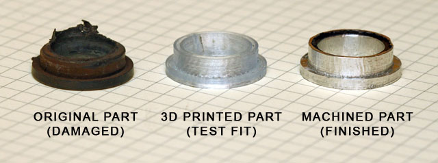 I started by measuring the old part and drawing it in Google Sketchup. I then printed a test piece to make sure it would fit. Printing the part only took a few minutes, and I was able to quickly verify my measurements. I don’t have any way to machine a part at home, so making sure I have the part designed to fit could save a bit of time.